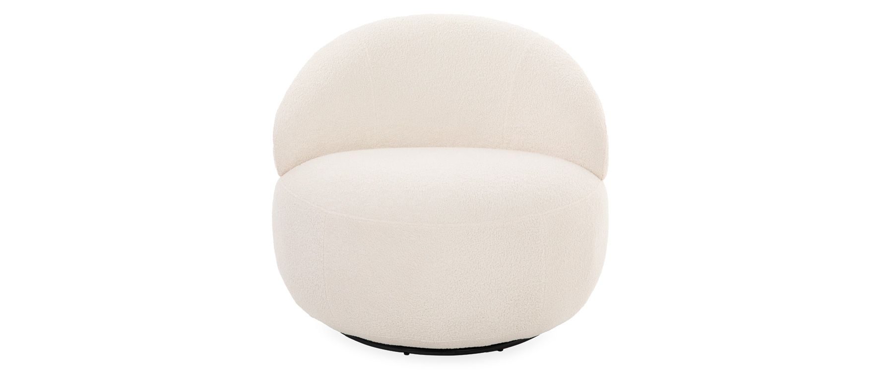 Please write a reviewHow did you feel about your recent purchase? We'd love to hear your thoughts and share them with others!A display of Retro FuturismThe Aurora Ivory Boucle Fabric Swivel Chair is a perfect blend of classic and contemporary elements, making it an ideal choice for any modern home or office. The chair's curved shape and plush cushioning provide a comfortable and supportive seating experience, making it the ideal choice for relaxation and leisure. The chair's low profile and elegant design make it a great choice for smaller spaces, helping to maximize space without sacrificing style or comfort.Product Information
