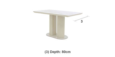 Colour & Configurations Available only in the colour shown, available in a large extending dining table, a medium extending dining table and a fixed dining table Material Ceramic bonded to glass in a marble-effect table top.