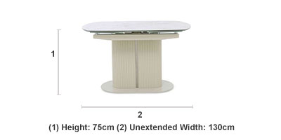 Please write a reviewHow did you feel about your recent purchase? We'd love to hear your thoughts and share them with others!The Avorio Extending Ceramic Dining Table brings smart design and contemporary style to modern dining spaces. Its marble-effect ceramic top is applied by hand, offering a glossy, premium finish that enhances both everyday meals and special occasions. A clever swivel extension allows the table to expand with ease—simply rotate the top and it transitions from seating six to seating eight. Built for longevity, the ceramic surface is heatproof, scratch-resistant, and chip-resistant, making it ideal for busy homes. The pedestal base features a fluted, architectural look, adding stability and visual appeal while maximising surrounding space. Compact yet adaptable, this table fits effortlessly into smaller dining areas while still providing generous extended seating. Easy to maintain and highly durable, it is a practical, stylish choice for contemporary family living.Product Information