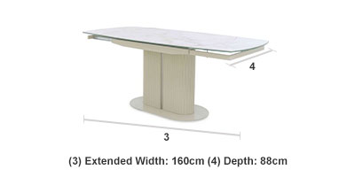 Colour & Configurations Available only in the colour shown, available in a large extending dining table, a medium extending dining table and a fixed dining table Material Ceramic bonded to glass in a marble-effect table top.
