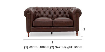 Please write a reviewHow did you feel about your recent purchase? We'd love to hear your thoughts and share them with others!The Bethany Chestnut Brown Leather 2 Seater Fixed Back Chesterfield Sofa brings timeless British heritage styling into modern homes. Upholstered in rich chestnut brown leather, it showcases the iconic Chesterfield silhouette with deep button tufting, elegant scroll arms and a structured fixed back. Built for durability and style, the premium leather develops character over time, enhancing its classic look. Foam-wrapped cushioning provides firm yet comfortable support, ideal for everyday use in living rooms, offices or snug spaces. Compact and beautifully proportioned, the Bethany 2 seater delivers a refined centrepiece with a luxurious, traditional feel.Product Information