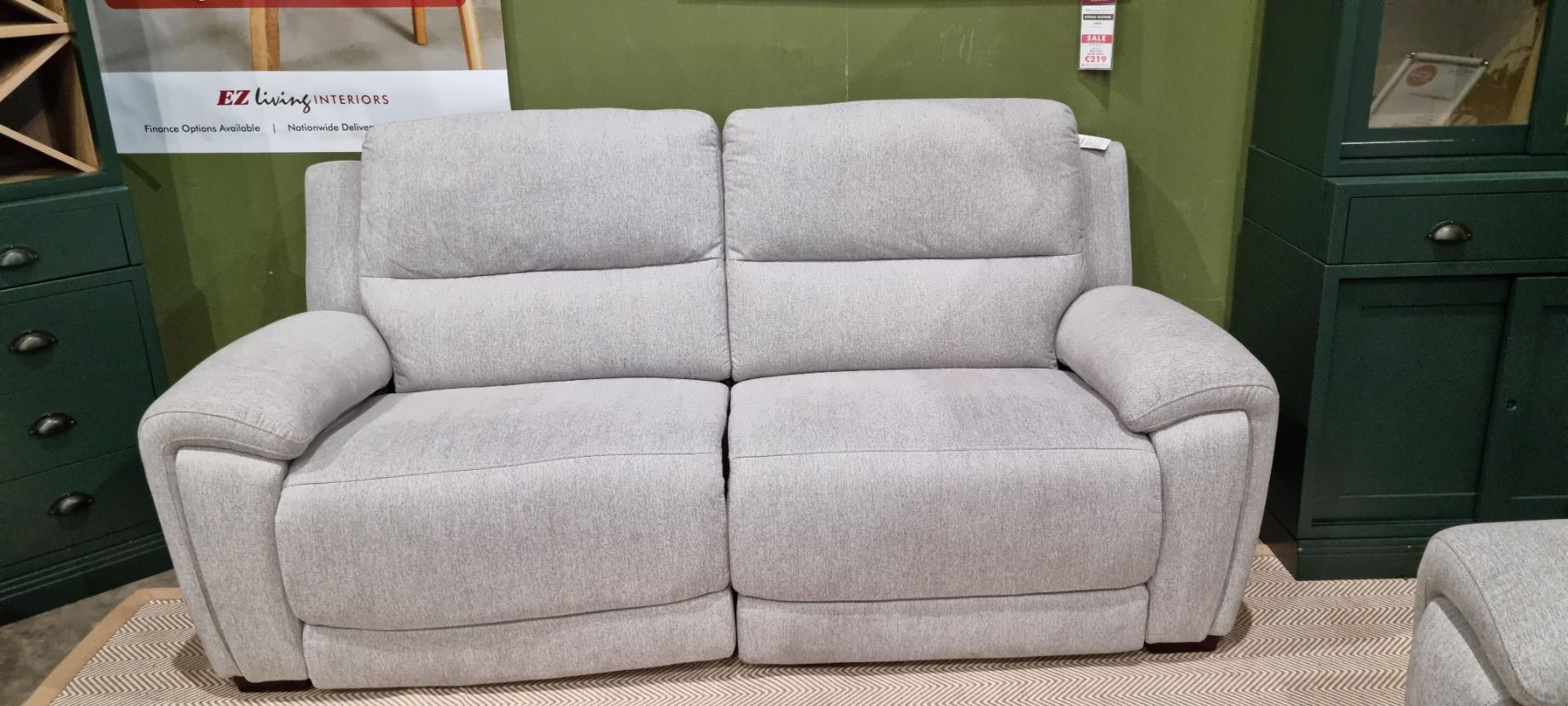 Chicago Dove Grey Fabric 2 Seater Sofa & 2 1 Seater Power Recliner, consists of 1 x 2 Seater Power Recliner Sofa and 2 x Power Recliner Armchairs, sold as seen. Only available at Blackpool Northpoint Clearance Outlet.Delivery