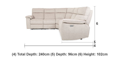 Ella Plush Beige 5 Piece Fabric Power Recliner Corner Sofa