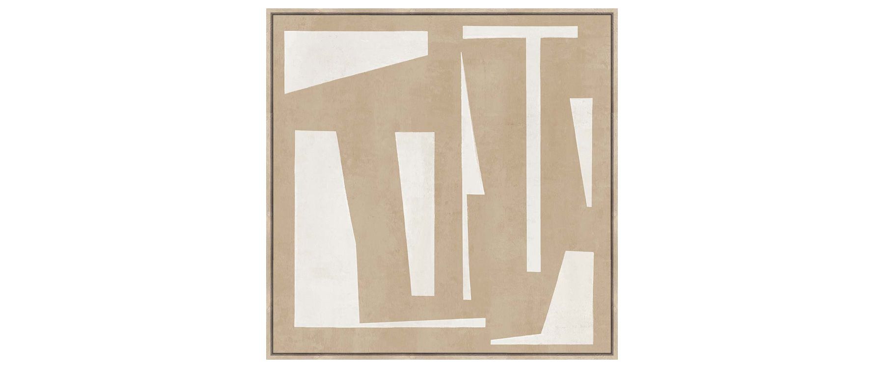 Please write a reviewHow did you feel about your recent purchase? We'd love to hear your thoughts and share them with others!Abstract BeautyBold white forms set against a sand backdrop, this piece of wall art exudes a quiet charm of Retro styling that is as timeless as it is perfectly on trend. Such a large format wall art piece would look at home in any room.Product Information