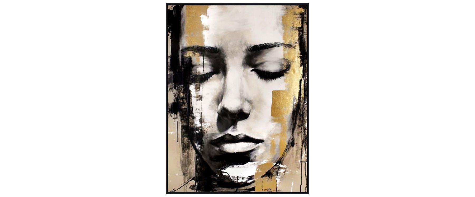 Please write a reviewHow did you feel about your recent purchase? We'd love to hear your thoughts and share them with others!Abstract BeautyBold black and white face with gold foil detailing, this piece of wall art exudes a quiet charm of modern styling that is as timeless as it is perfectly on trend. Such a large format wall art piece would look at home in any room.Product Information