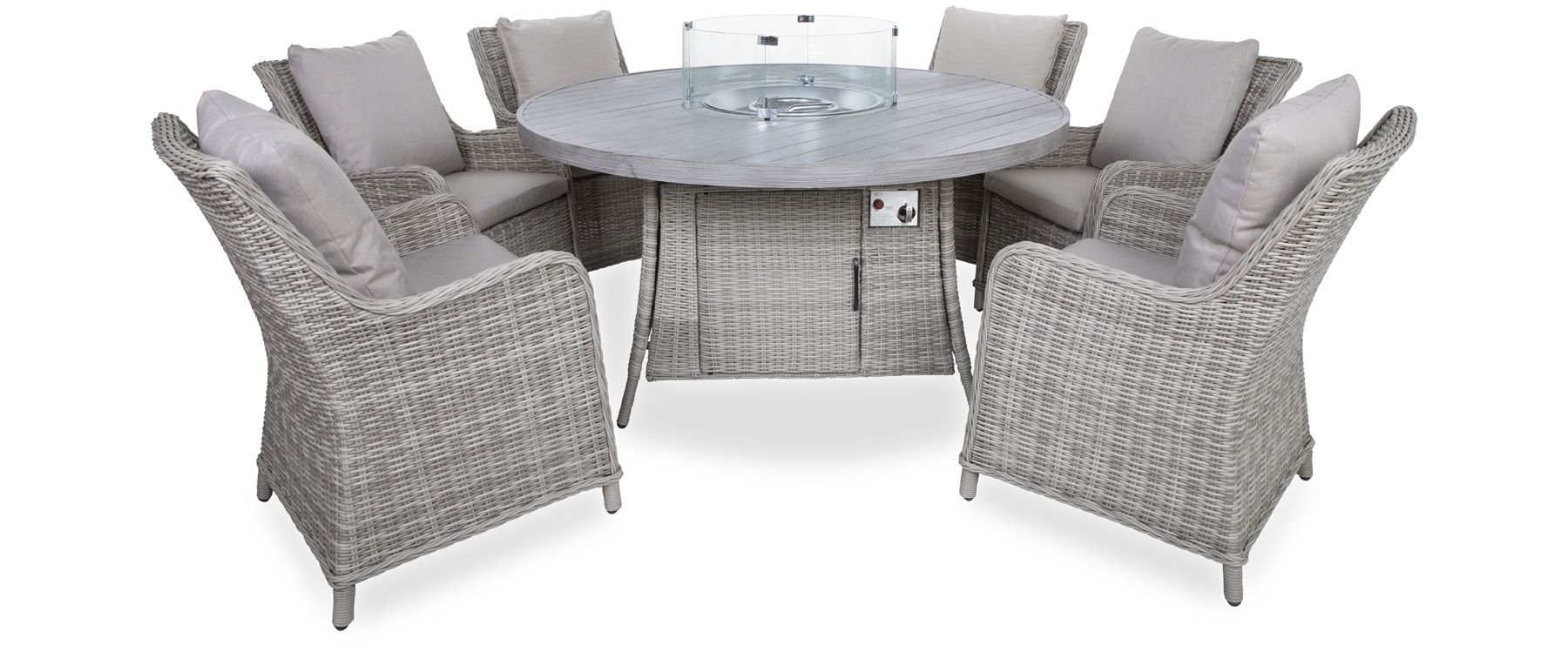 Low maintenance wicker effect carcassSet includes circular fire pit table and 6 chairsCircular fire resistant top on tableChairs have comfortable removable cushionsHidden compartment for fuel, gas not includedCushions are made with outdoor fabric and foamThis set is water-resistant. Please store in inclement weatherOnly available in colour and combination shownAccidents can happen but we have you covered with our Guardsman 5 year Protection Plan. Click here for Further Information.Also in the Hampton Garden CollectionInterior Design ServiceWhether you're renovating your entire home or updating a room, get expert advice from our team and book an interior design consultation today for only €49!Room DesignerView The Hampton Garden In Room DesignerWant to style it your way? Create your dream home with Room Designer. Choose your colour scheme and add home accessories to plan your space to perfection.Why Buy From Us- NATIONWIDE,