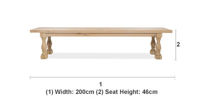Please write a reviewHow did you feel about your recent purchase? We'd love to hear your thoughts and share them with others!The Heritage 2M Oak Dining Bench offers a practical and stylish seating solution, crafted from natural oak for a rustic yet elegant appeal. At 2 metres in length, it comfortably seats multiple guests, making it an excellent partner for the Heritage extending dining tables. Its solid wooden frame ensures long-lasting durability, with the natural oak finish highlighting the wood’s grain and texture for a timeless look. Traditional country dining table legs bring a farmhouse-inspired charm, adding character while ensuring stability. Built to withstand daily use, this oak bench is perfect for both family dining and entertaining. Its versatile design allows it to fit seamlessly into rustic, traditional, or modern interiors seeking a natural touch. The compact shape enables it to slide neatly under the table when not in use, saving space in your dining room. Pair it with other pieces from the Heritage range for a cohesive dining set that blends functionality with rustic beauty. Its robust craftsmanship and natural oak finish make it a durable and stylish choice that enhances your dining experience.Product Information