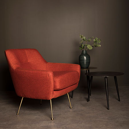 We think you’ll also be interested in the addition of the Zelda accent chairs which come in a vibrant orange finish and a also darker blue option. We love the durability of this fabric option but we also admire the sleek gold leg; it’s a really cozy chair too and both colours will complement hues of navy, green, grey and classic cream that you might already have in your home.