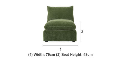 Please write a reviewHow did you feel about your recent purchase? We'd love to hear your thoughts and share them with others!The Jade Modular Armless Unit in bottle green fabric is a versatile addition to the Jade modular sofa range, designed to extend the width of your corner group and adapt your seating to suit your space. Finished in a rich, deep bottle green, it adds a bold yet elegant touch of colour that enhances modern interiors. It features comfortable foam seat cushions supported by a sinuous spring seat platform for lasting support, with luxurious fibre-filled back cushions for a soft, relaxed feel. Completed with low-profile black feet for a clean, contemporary finish, this armless unit blends seamlessly with the Jade range, offering flexible styling, comfort, and modern design in one elegant piece.Product Information