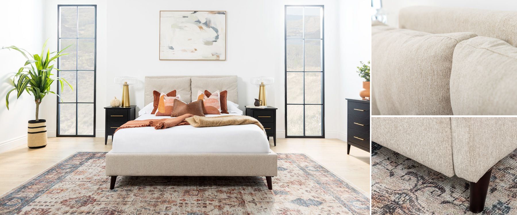 Please write a reviewHow did you feel about your recent purchase? We'd love to hear your thoughts and share them with others!Pillow-Back PerfectionThe Levi bed frame, upholstered in soft beige fabric, combines timeless comfort with modern style. Its standout feature is the distinctive pillow-back styled headboard, beautifully accented with button tufting for a touch of elegance. Supported by dark wood legs, this bed offers both stability and sophistication. The sturdy wooden slats and metal center rail provide excellent support for a restful night’s sleep, making it the perfect blend of style and functionality for any bedroomProduct Information