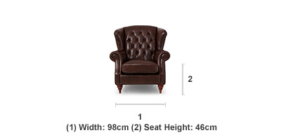 Please write a reviewHow did you feel about your recent purchase? We'd love to hear your thoughts and share them with others!Experience timeless sophistication and superior comfort with the Nelson Chestnut Leather Chesterfield Armchair, a classic statement piece crafted to elevate any living space. Wrapped in rich chestnut brown genuine leather, this armchair embodies traditional Chesterfield charm with its deep button tufted backrest, rolled arms, and elegant wing back silhouette. The luxurious upholstery develops a beautiful patina over time, adding warmth and character to your home. Built for lasting durability, the Nelson features a hardwood and softwood frame, ensuring a strong yet resilient foundation. Its seat is supported by sinuous springs and webbing, offering exceptional comfort and shape retention. The foam and inner spring cushioning deliver a plush yet supportive sit, perfect for hours of relaxation. Finishing touches like dark oak turned feet and handcrafted tufting reflect exquisite attention to detail and timeless craftsmanship.Product Information