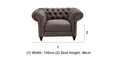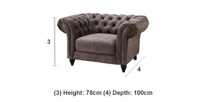Sizes: chesterfield armchair, 2 seater chesterfield sofa, 3 seater chesterfield sofaMaterial Fabric: 100% polyester Cushioning High-density foam and fibre wrap encased in fabric.