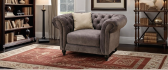 Regal Brown Fabric 1 Seater Fixed Back Chesterfield Armchair