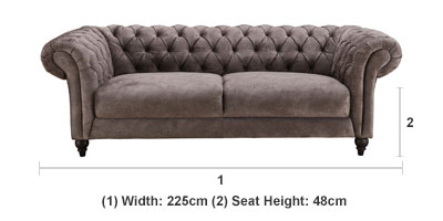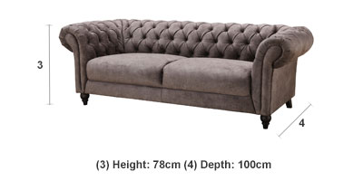 Sizes: chesterfield armchair, 2 seater chesterfield sofa, 3 seater chesterfield sofaMaterial Fabric: 100% polyester Cushioning High-density foam and fibre wrap encased in fabric.