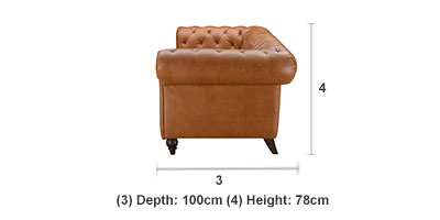 Sizes: chesterfield armchair, 2 seater chesterfield sofa, 3 seater chesterfield sofaMaterial Fabric: Leather Cushioning High-density foam and fibre wrap encased in leather.