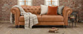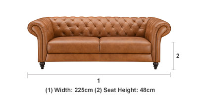 Sizes: chesterfield armchair, 2 seater chesterfield sofa, 3 seater chesterfield sofaMaterial Fabric: Leather Cushioning High-density foam and fibre wrap encased in leather.