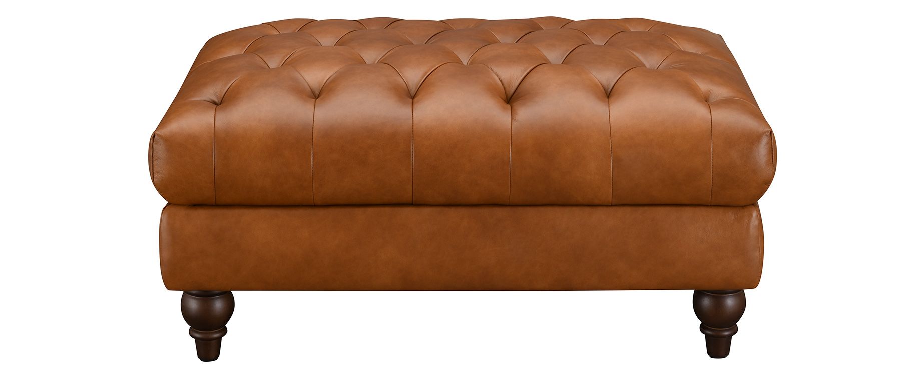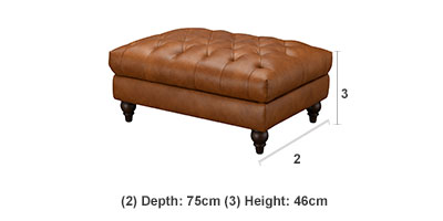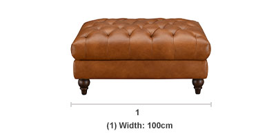 Sizes: Ottoman footstool, chesterfield armchair, 2 seater chesterfield sofa, 3 seater chesterfield sofaMaterial Fabric: Leather Cushioning Pine and engineered wood Frame High-density foam and fibre wrap encased in leather Foot Material Solid wood finished in a dark walnut Features Chesterfield style traditional button back and arms