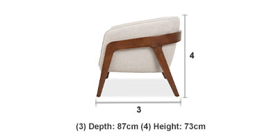 Colors Only available in colour shown. Material Cream fabric with Mohair Cushioning Seat and back: High density foam core encased in a fibre wrap offering a perfect blend of support and comfort Assembly comes fully assembled Frame Hardwood finished in a dark warm stain Care Learn how to protect and care for your new chair with our Care guide here Accidents can happen but we have you covered with our Guardsman 5 year Protection Plan. Click here for Further Information.Also in the Collection