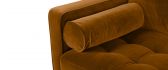 Please write a reviewHow did you feel about your recent purchase? We'd love to hear your thoughts and share them with others!The Scott Cognac Velvet 3 Seater Sofa is a spacious and inviting centrepiece for contemporary living rooms. Upholstered in luxurious cognac velvet, with an 85% cotton and 15% polyester composition, it offers a soft, durable finish that enhances its sleek design. Built with a strong hardwood and softwood frame, the sofa is supported by solid wood legs in a dark stained finish for strength and elegance. Its deep cushioned seats are filled with high-density foam cores wrapped in fibre, ensuring plush comfort while maintaining shape. Two matching bolster cushions are included, enhancing both design and relaxation. The 3 seater design provides ample seating space while pairing effortlessly with other Scott pieces such as the armchairs, chaise, and footstools. With its bold velvet finish and modern profile, this sofa makes a striking addition to any interior.Product Information