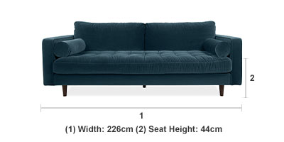 Please write a reviewHow did you feel about your recent purchase? We'd love to hear your thoughts and share them with others!Introducing the Scott Azure Blue Velvet 3-Seater Sofa, where comfort meets contemporary elegance. Upholstered in luxurious, soft velvet, this sofa invites you to relax with its plush cushions and generous seating space. The sophisticated design features clean lines and a sleek silhouette, making it a perfect centerpiece for any living room. Available in a range of modern colors, the Scott Azure Blue Sofa effortlessly complements your décor while providing the ultimate lounging experience. Transform your space into a stylish retreat with this stunning addition!Product Information