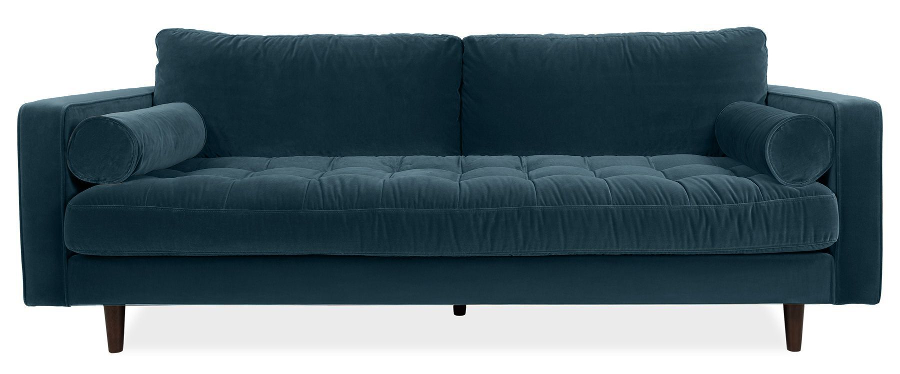 Sizes: Small footstool, ottoman footstool, Nina wingback, 1 Seater, 2 Seater, 3 Seater, Right Facing Chaise, Left Facing Chaise.Material Durable velvet with an 85% Cotton and 15% Polyester composition Seat cushions High density foam core encased in a fibre wrap offering a perfect blend of support and comfort Scatter cushions Two bolster cushions included Frame Hardwood and softwood frame construction Foot Material Solid wood feet with a dark stain finish Fabric information The luxurious velvets used in this range may naturally develop subtle shading and pile pressure over time, adding to the unique character and charm of each piece Range View the rest of Scott range here Care Learn how to protect and care for your new sofa with our Care guide here Accidents can happen but we have you covered with our Guardsman 5 year Protection Plan. Click here for Further Information.Also in the Scott Sofa Collection