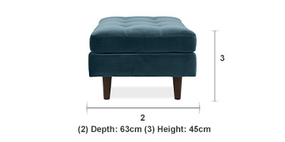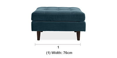 Please write a reviewHow did you feel about your recent purchase? We'd love to hear your thoughts and share them with others!The Scott Azure Blue Velvet Small Footstool is a refined accent piece that brings both function and style to your living room. Upholstered in rich azure blue velvet, it is made from a durable blend of 85% cotton and 15% polyester, designed to withstand everyday use while maintaining a luxurious feel. Its compact size makes it easy to move around and place wherever comfort is needed, while the deep foam and fibre cushion filling ensures a soft, supportive touch. Built on a robust hardwood and softwood frame, the footstool is finished with solid wood feet in a dark stain for a timeless look. Perfectly coordinating with the sofas, chairs, and ottomans from the Scott Azure Blue Velvet range, this piece completes the collection with subtle elegance. A versatile addition that enhances both modern and traditional interiors with a pop of colour and luxury.Product Information
