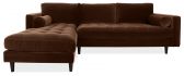 Scott Chocolate Brown Velvet Corner Sofa with Left Hand Facing Chaise